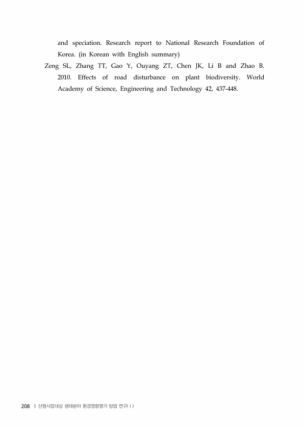 208 | 선형사업대상 생태분야 환경영향평가 방법 연구 Ⅰ