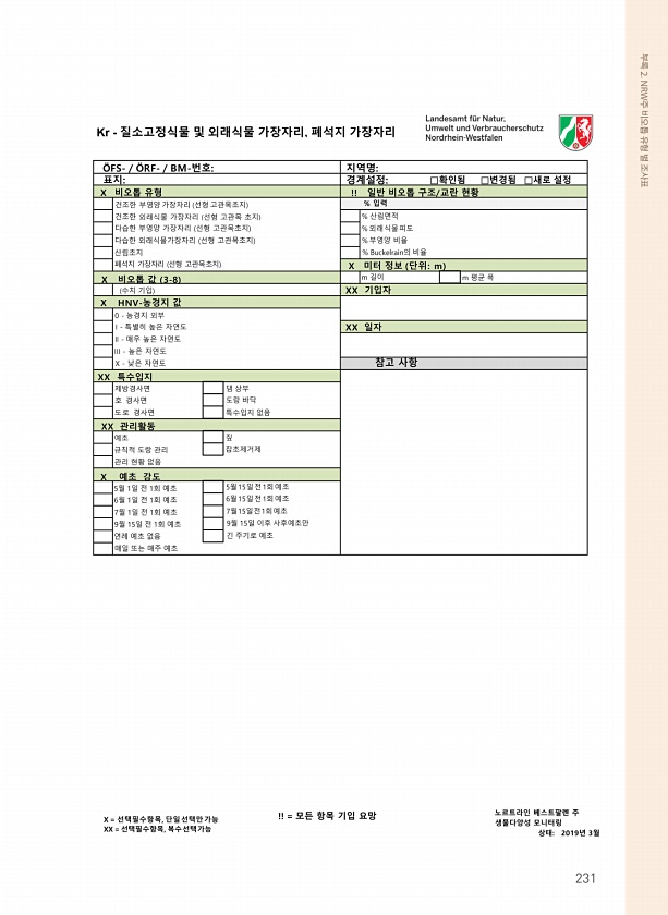 부록 2. NRW주 비오톱 유형 별 조사표231