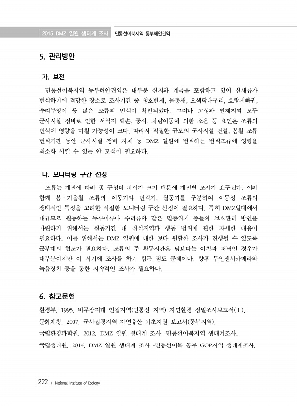 제목 : (2015) DMZ 일원 생태계 조사 :민통선이북 동부해안권역