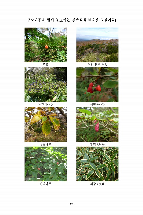 xv 구상나무와 함께 분포하는 관속식물 한라산 영실지역 주목 주목 분포 현황 노린재나무 매발톱나무 신갈나무 함박꽃나무 산딸나무제주조릿대