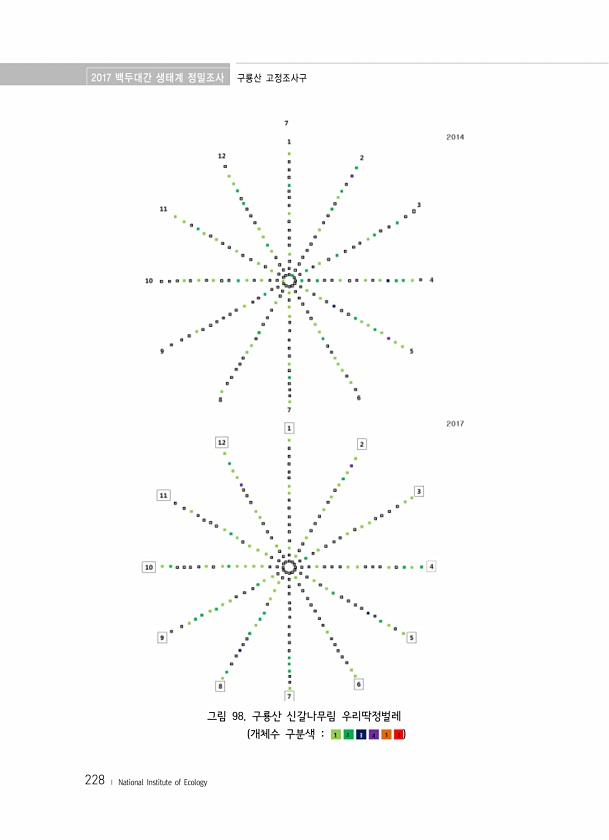 2017 백두대간 생태계 정밀조사 구룡산 고정조사구 228 ? National Institute of Ecology 그림 98. 구룡산 신갈나무림 우리딱정벌레 개체수 구분색