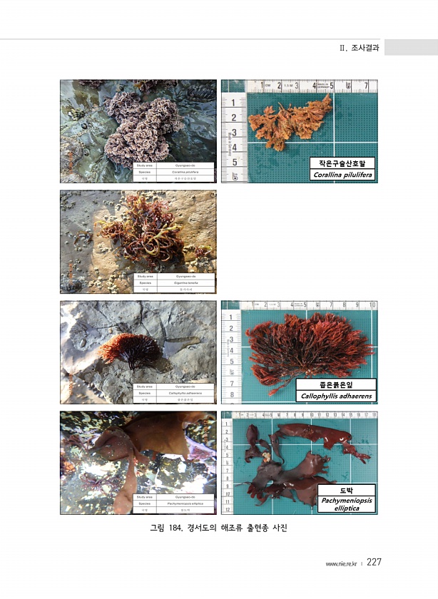 Ⅱ. 조사결과 www.nie.re.kr ? 227 그림 184. 경서도의 해조류 출현종사진