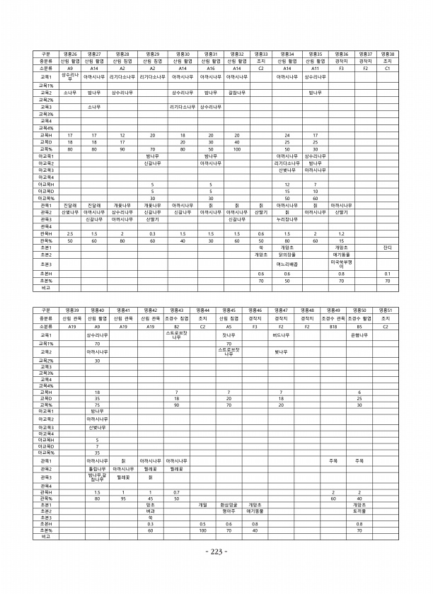 구분 영흥26 영흥27 영흥28 영흥29 영흥30 영흥31 영흥32 영흥33 영흥34 영흥35 영흥36 영흥37 영흥38 중분류 산림 활엽 산림 활엽 산림 침엽 산림 침엽 산림 활엽 산림 활엽 산림 활엽 초지 산림 활엽 산림 활엽 경작지 경작지 초지 소분류 A9 A14 A2 A2 A14 A16 A14 C2 A14 A11 F3 F2 C1 교목1 상수리나 무 아까시나무 리기다소나무 리기다소나무 아까시나무 아까시나무 아까시나무 아까시나무 상수리나무 교목1% 교목2 소나무 밤나무 상수리나무 상수리나무 밤나무 갈참나무 밤나무 교목2% 교목3 소나무 리기다소나무 상수리나무 교목3% 교목4 교목4% 교목H 17 17 12 20 18 20 20 24 17 교목D 18 18 17 20 30 40 25 25 교목% 80 80...
