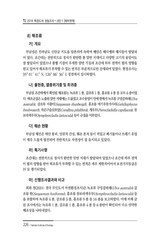제목 : (2018) 특정도서 정밀조사 : 신안북부권역