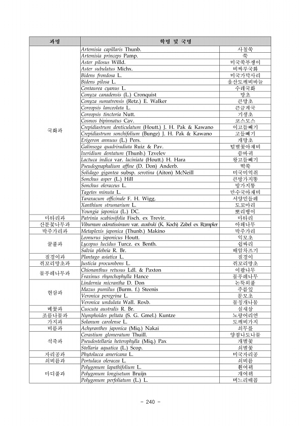 2018 DMZ 일원 생태계 조사 민통선이북지역 중부산악권역 232 ? National Institute of Ecology 라 적근산 코스 적근산 코스 일대는 8목 71과 242종 631개체가 3차례에 걸쳐 조사되었다. 적근산 코스에서는 애멸구가 가장 많은 개체수로 조사되었으며, 넓은 초지의 서식환경에 따라 나비목, 딱정벌레목 곤충과 대량발생하는 해충인 멸구과 곤충 등이 다양하게 조사되었다. 마 산양리 코스 산양리 코스 일대는 9목 54과 149종 328개체가 3차례에 걸쳐 조사되었다. 산양산 코스에서는 광량이 적은 목본 인근의 초본류에서 썩덩나무노린재가 가장 많은 개체수로 출현하는 경향을 보였다. 바 주파리 코스 주파리 코스 일대는 9목 56과 184종 364개체가 3차례에 걸쳐 조사되었다. 주파리 코스...