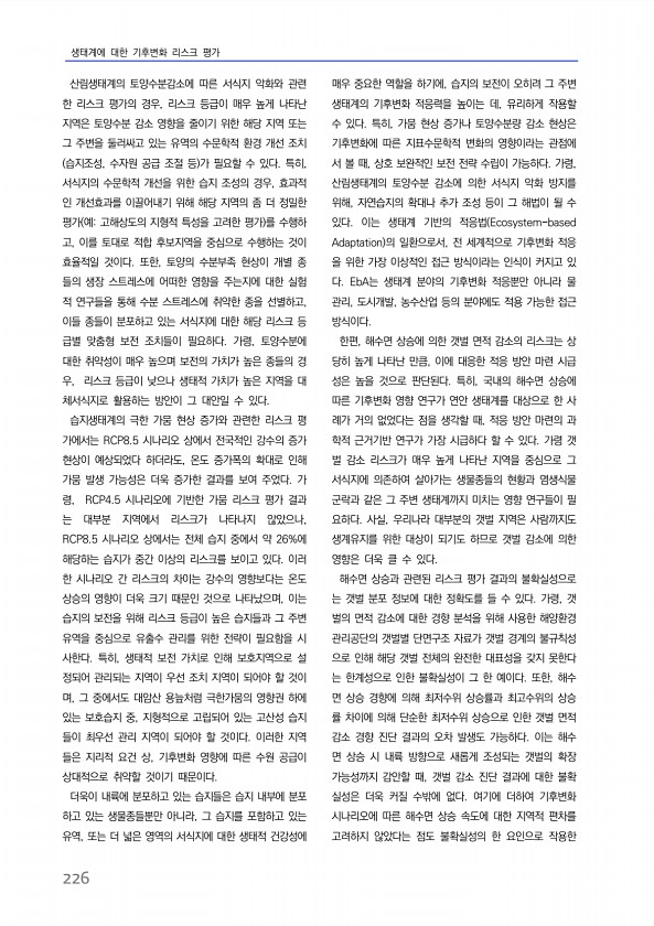 제목 : 생태계에 대한 기후변화 리스크 평가