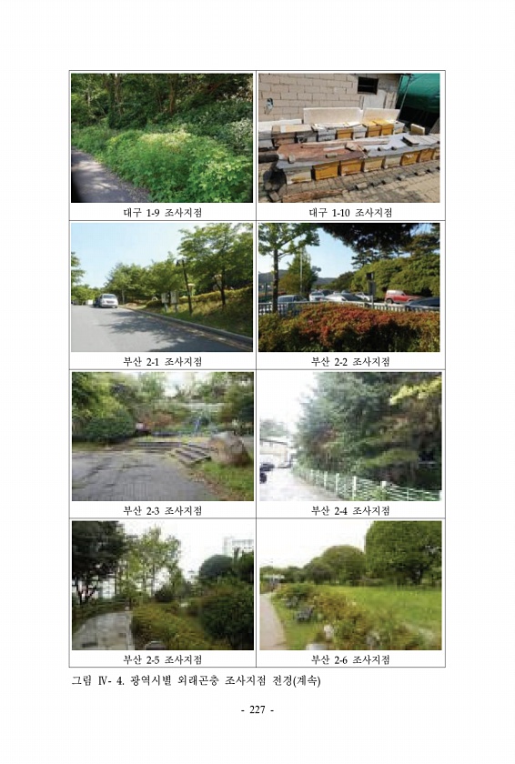 대구 1-9 조사지점 대구 1-10 조사지점 부산 2-1 조사지점 부산 2-2 조사지점 부산 2-3 조사지점 부산 2-4 조사지점 부산 2-5 조사지점 부산 2-6 조사지점 그림 Ⅳ- 4. 광역시별 외래곤충 조사지점 전경 계속 227