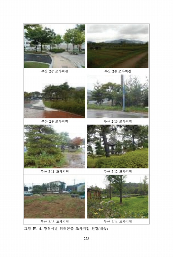 부산 2-7 조사지점 부산 2-8 조사지점 부산 2-9 조사지점 부산 2-10 조사지점 부산 2-11 조사지점 부산 2-12 조사지점 부산 2-13 조사지점 부산 2-14 조사지점 그림 Ⅳ- 4. 광역시별 외래곤충 조사지점 전경 계속 228