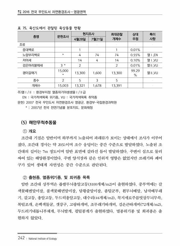 제목 : (2016) 전국 무인도서 자연환경조사 : 영광권역
