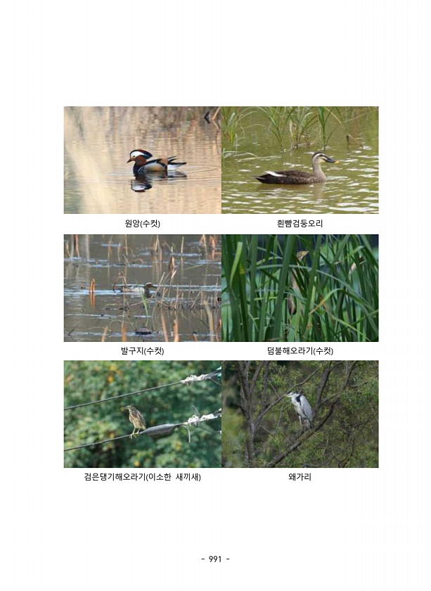 991 원앙 수컷 흰뺨검둥오리 발구지 수컷 덤불해오라기 수컷 검은댕기해오라기 이소한 새끼새왜가리