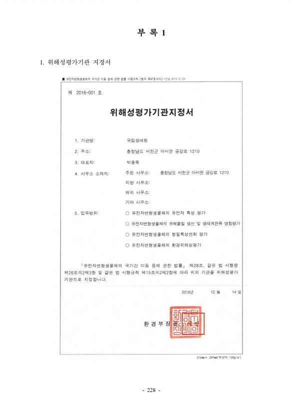 제목 : (2019년) 환경부 소관 LMO 위해성평가 체계 구축 및 평가기관 운영