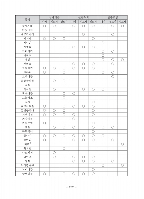 육 상 곤 충 National Institute of EcologyⅠ243 목명 과명 국명 A B C D 비고 나비목 밤나방과 더러운밤나방 ○ 나비목 밤나방과 흰줄썩은잎밤나방 ○ 나비목 밤나방과 노랑무늬꼬마밤나방 ○ ○ 나비목 밤나방과 왕뿔무늬저녁나방 ○ ○ 나비목 밤나방과 벚나무저녁나방 나비목 밤나방과 노랑뒷날개저녁나방 ○ 나비목 밤나방과 배저녁나방 ○ ○ 나비목 밤나방과 뒷검은까마귀밤나방 ○ 나비목 밤나방과 지옥까마귀밤나방 ○ ○ 나비목 밤나방과 까마귀밤나방 나비목 밤나방과 분홍금무늬나방 나비목 밤나방과 우단꼬마밤나방 ○ 나비목 밤나방과 풀색톱날무늬밤나방 나비목 밤나방과 흑점밤나방 ○ ○ 나비목 밤나방과 담색밤나방 ○ 나비목 밤나방과 뒷흰날개담색밤나방 ○ ○ 나비목 밤나방과 검은담색밤나방 ○ 나비목 밤나...