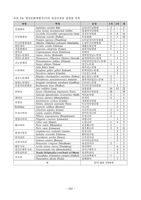 Ⅱ. 조사결과 www.nie.re.kr ? 247 그림 99. 응복산 고정조사구 소나무림 진홍단딱정벌레 계속 개체수 구분색
