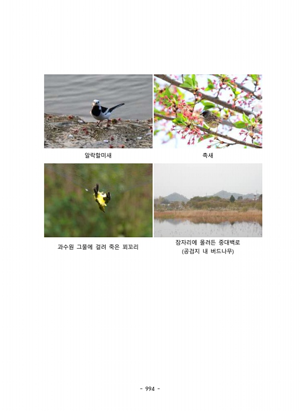 994 알락할미새 촉새 과수원 그물에 걸려 죽은 꾀꼬리 잠자리에 몰려든 중대백로 공검지 내 버드나무