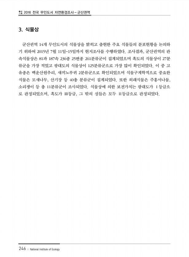 제목 : (2016) 전국 무인도서 자연환경조사 : 군산권역