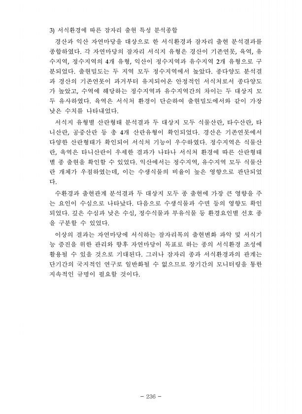 제목 : 생태계 훼손지 및 복원지의 진단 평가와 회복력 증진 방안