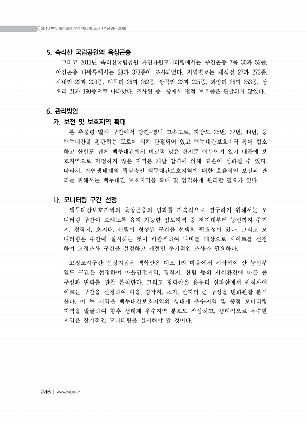 제목 : (2016) 백두대간보호지역 생태계 조사.밀재~묘적재