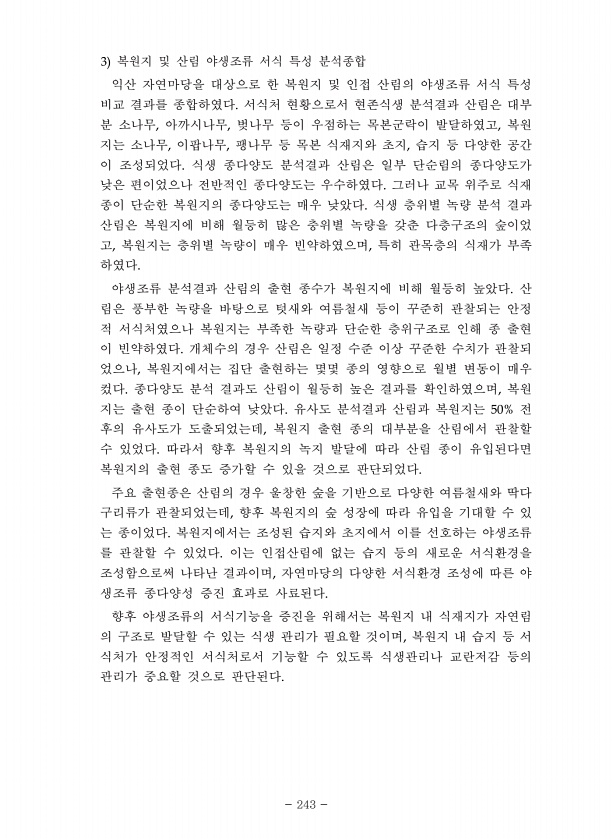 제목 : 생태계 훼손지 및 복원지의 진단 평가와 회복력 증진 방안