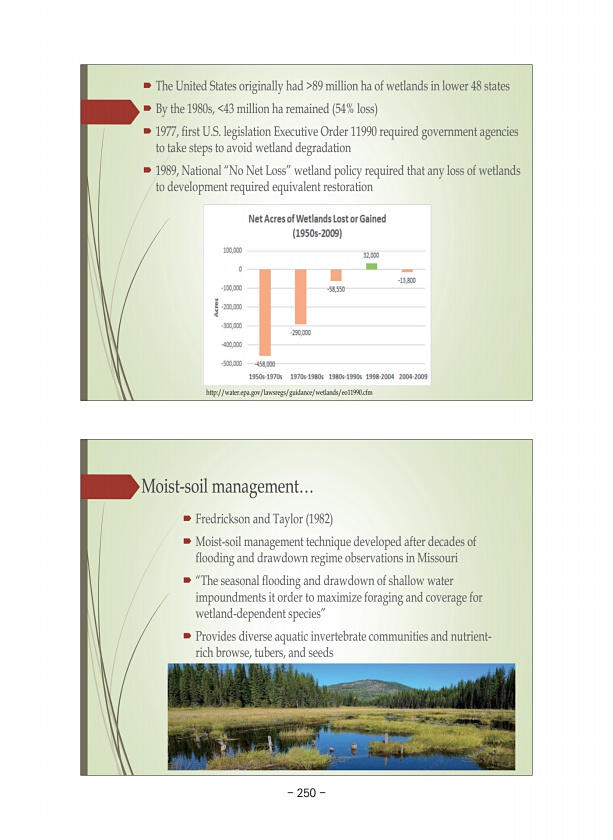 Moist-soil management… ? Fredrickson and Taylor 1982 ? Moist-soil management technique developed after decades of flooding and drawdown regime observations in Missouri ? “The seasonal flooding and drawdown of shallow water impoundments it order to maximize foraging and coverage for wetland-dependent species” ? Provides diverse aquatic invertebrate communities and nutrientrich browse, tubers, and s...
