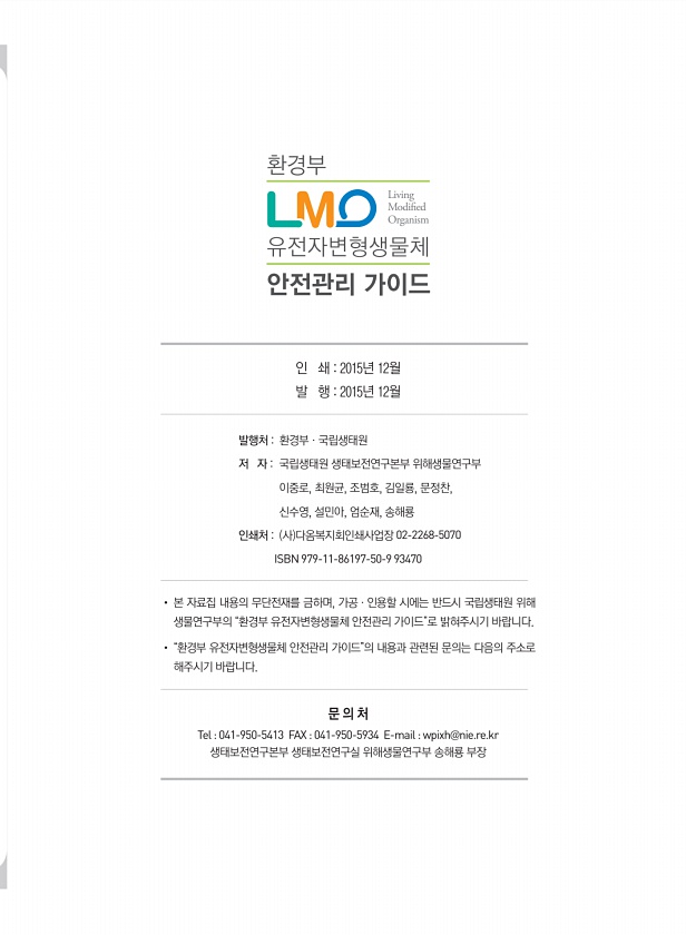 제목 : LMO 유전자변형생물체 안전관리 가이드