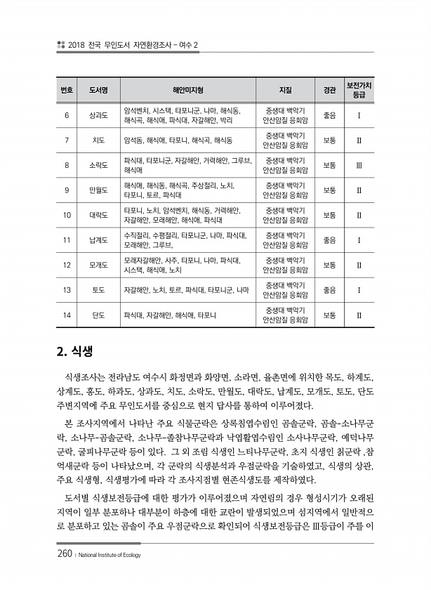 제목 : (2018) 전국 무인도서 자연환경조사 : 여수 2권역