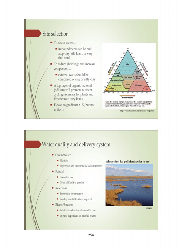 Water quality and delivery system ? Groundwater ? Plentiful ? Expensive and occasionally lacks nutrients ? Rainfall ? Cost-effective ? Often difficult to predict ? Reservoirs ? Expensive construction ? Readily available when required ? Rivers/Streams ? Relatively reliable and cost-effective ? In part, dependent on rainfall events Always test for pollutants prior to use! Epa.gov Site selection ? To...