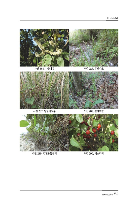 II. 조사결과 www.nie.re.kr ?259 사진 285. 다릅나무 사진 286. 무늬사초 사진 287. 방울비짜루 사진 288. 산제비란 사진 289. 안면용둥굴레 사진 290.이스라지