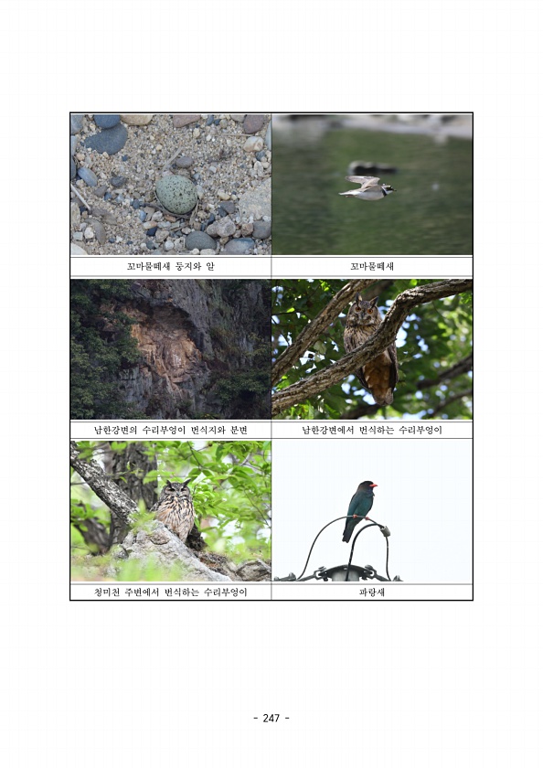 247 꼬마물떼새 둥지와 알 꼬마물떼새 남한강변의 수리부엉이 번식지와 분변 남한강변에서 번식하는 수리부엉이 청미천 주변에서 번식하는 수리부엉이파랑새