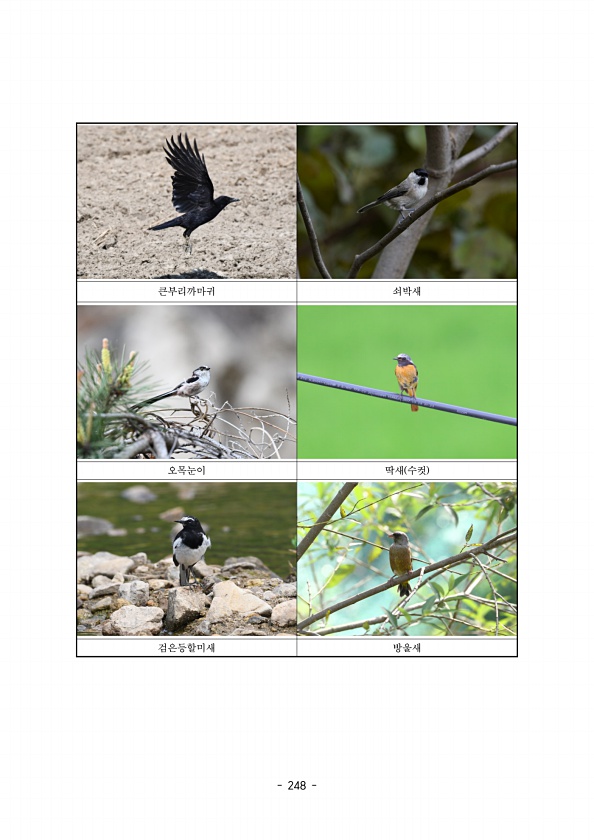 248 큰부리까마귀 쇠박새 오목눈이 딱새 수컷 검은등할미새방울새