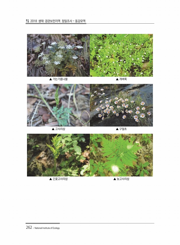 2018 생태·경관보전지역 정밀조사 동강유역 262 ? National Institute of Ecology ▲ 가는기름나물 ▲ 개벼룩 ▲ 고사리삼 ▲ 구절초 ▲ 긴꽃고사리삼 ▲늦고사리삼