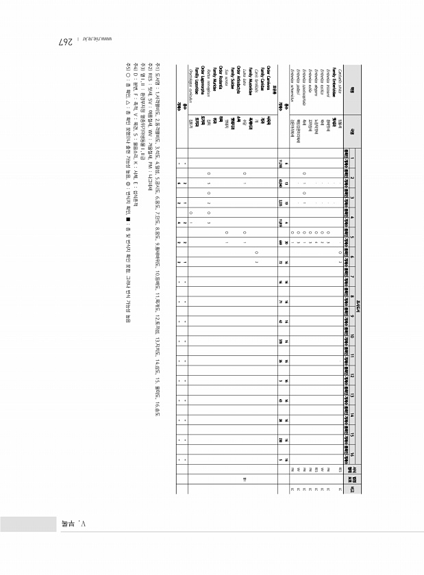 Ⅱ. 조사결과 www.nie.re.kr ? 267 학 명 국 명 천미리 오천 터널 월명리 성곡령 상무 룡리 도고 터널 심적리2 Songmeter 합계 Tetrastes bonasia 들꿩 1 1 Phasianus colchicus 꿩 ● Aix galericulata 원앙 1 1 Ardea cinerea 왜가리 1 1 Ardea alba modesta 중대백로 5 5 Phalacrocorax carbo 민물가마우지 2 2 Pernis ptilorhynchus 벌매 3 3 Accipiter gularis 조롱이 1 ● 1 Accipiter gentilis 참매 1 ● 1 Butastur indicus 왕새매 1 1 Actitis hypoleucos 깝작도요 2 2 Streptopelia orietalis 멧비...