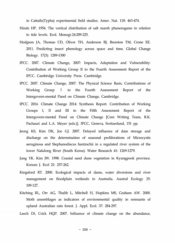 250 in Cattails Typha experimental field studies. Amer. Nat. 118463-474. Hinde HP. 1954. The vertical distribution of salt marsh phanerogams in relation to tide levels. Ecol. Monogr.24209-225. Hodgson JA, Thomas CD, Oliver TH, Anderson BJ, Brereton TM, Crone EE. 2011. Predicting insect phenology across space and time. Global Change Biology. 17 3 1289-1300 IPCC. 2007. Climate Change, 2007Impacts, A...