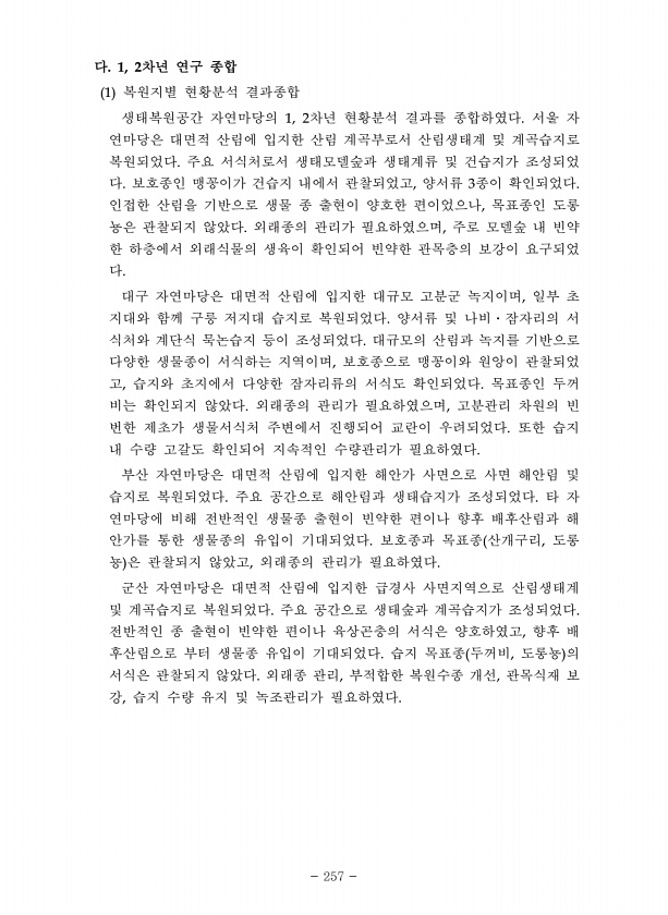 제목 : 생태계 훼손지 및 복원지의 진단 평가와 회복력 증진 방안