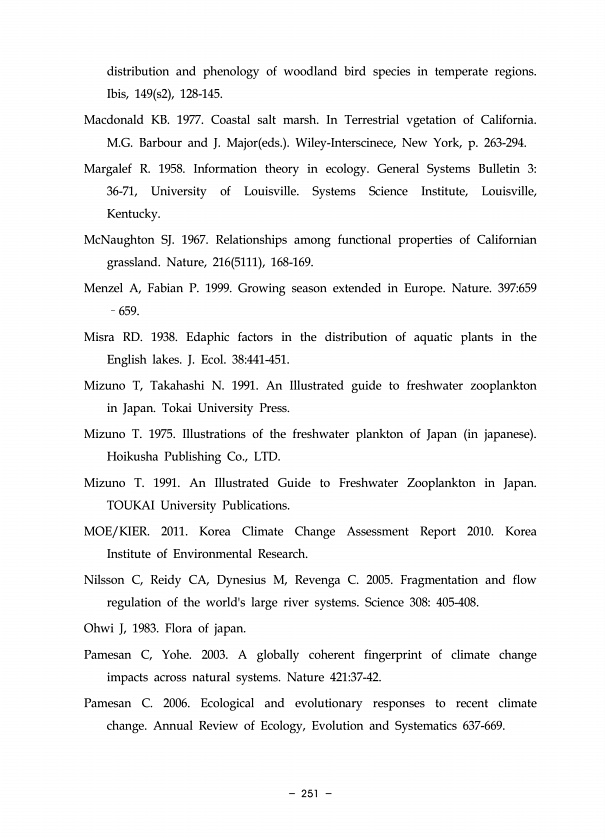 251 distribution and phenology of woodland bird species in temperate regions. Ibis, 149 s2 , 128-145. Macdonald KB. 1977. Coastal salt marsh. In Terrestrial vgetation of California. M.G. Barbour and J. Major eds. Wiley-Interscinece, New York, p. 263-294. Margalef R. 1958. Information theory in ecology. General Systems Bulletin 336-71, University of Louisville. Systems Science Institute, Louisville...