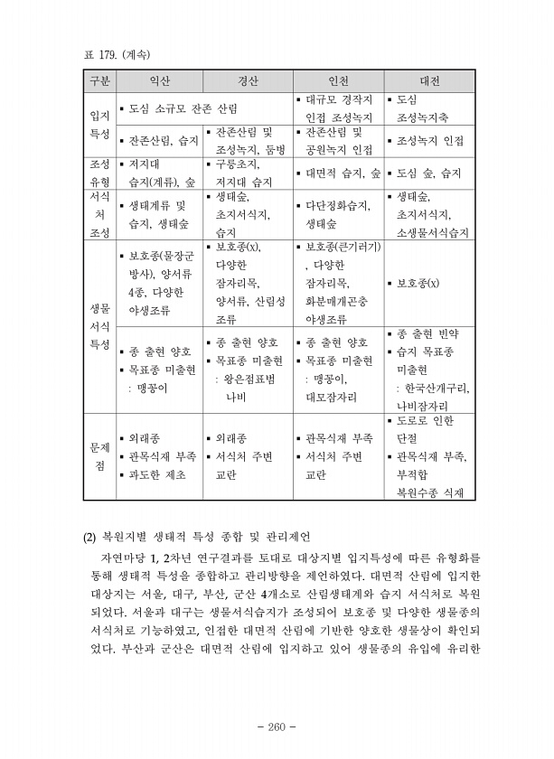 제목 : 생태계 훼손지 및 복원지의 진단 평가와 회복력 증진 방안
