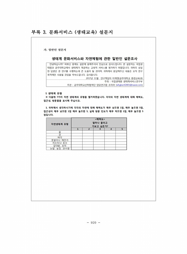 920 부록 3. 문화서비스 생태교육설문지