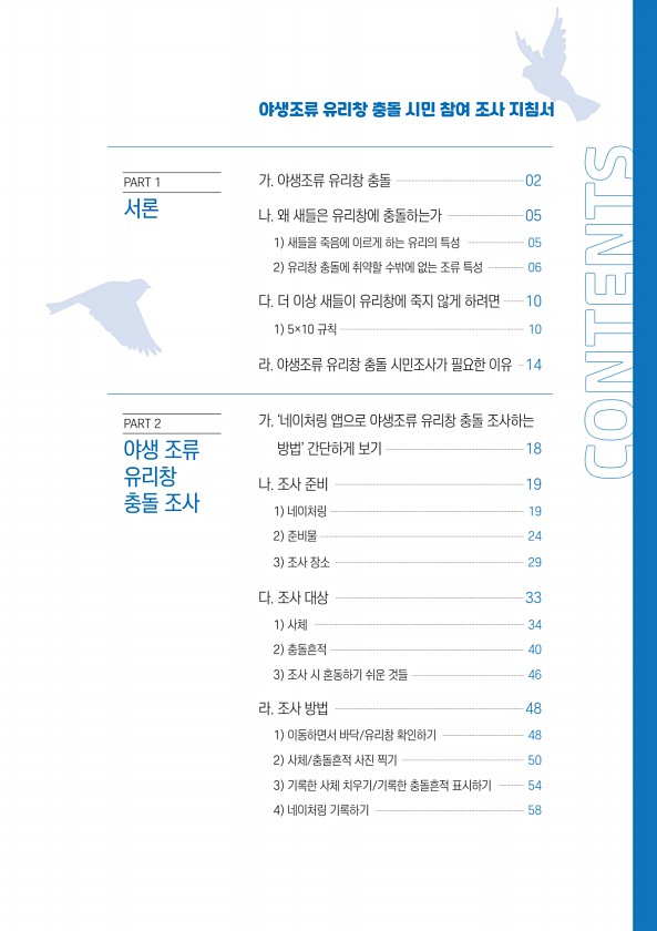 제목 : 야생조류 유리창 충돌 시민 참여 조사 지침서