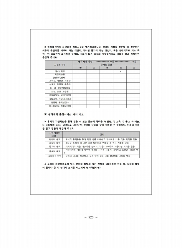Ⅴ. 부 록 www.nie.re.kr ? 275 조사표번호 계도-1 조사 일자 2016년 4월 20일 조 사 자 방제용,이지효 식 생 조 사표 군락명초지-관목림 조사지역전북 군산시 옥도면 선유도리 산79-1, 79-2 도엽명 격자번호 식생상관초지-관목림 면적10 × 10 ㎡ 위·경도 GPS 35 ° 51 ′ 00 ″N, 126 ° 26 ′ 45 ″E 해발48 m 지형□산정 □능선 ?사면 ?상?중□하 □계곡 □평지 미세지형?평면 □돌출 □함몰 □요철 방위북동 토양□갈색삼림토 □적황색삼림토 □암적색삼림토 □회갈색삼림토 □침식토 □미숙토 □암쇄토 경사5 ° 낙엽부식층 cm □≥20 ? 15 □ 10 □ 5 □0 암석노출 % □≥51 □〈50 □〈25 □〈5 □0 계층구분 높이 m 식피율 % 우점종 식생보전가치평가...