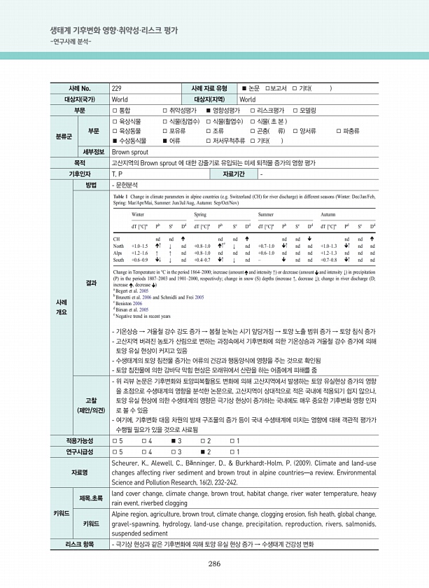제목 : 생태계 기후변화 영향·취약성·리스크평가 : 연구사례분석
