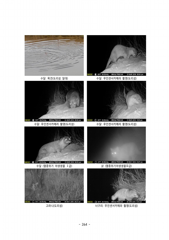 264 수달 목견 도리섬 일대 수달 무인센서카메라 촬영 도리섬 수달 무인센서카메라 촬영 도리섬 수달 무인센서카메라 촬영 도리섬 수달 멸종위기 야생생물 급 Ⅰ 삵 멸종위기야생생물 급 Ⅱ 고라니 도리섬 너구리 무인센서카메라 촬영 도리섬
