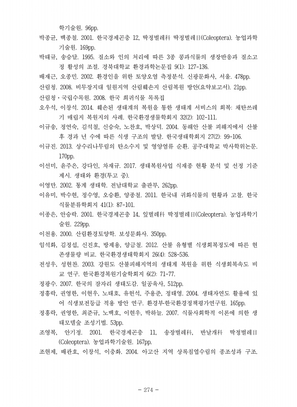 제목 : 생태계 훼손지 및 복원지의 진단 평가와 회복력 증진 방안