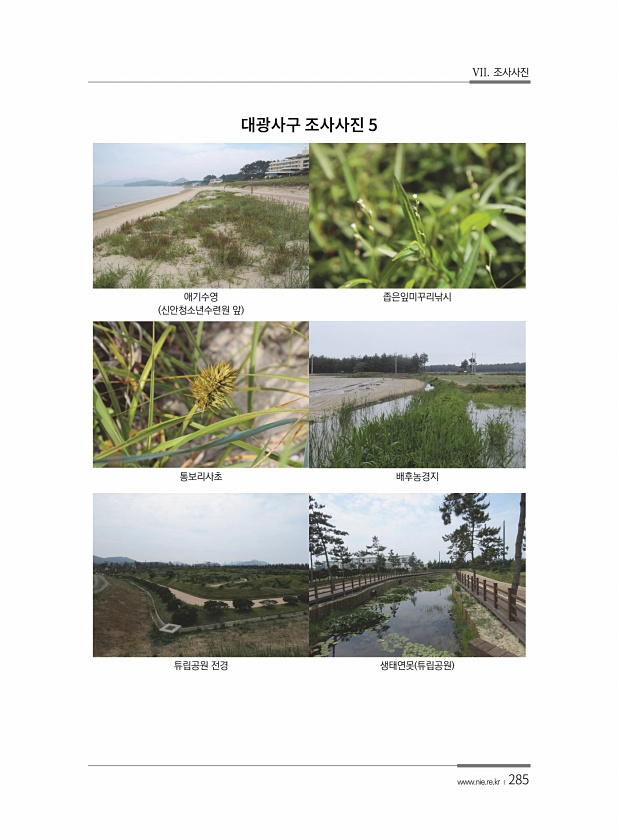 VII. 조사사진 www.nie.re.kr ?285 애기수영 신안청소년수련원 앞 좁은잎미꾸리낚시 통보리사초 배후농경지 튜립공원 전경 생태연못 튜립공원5
