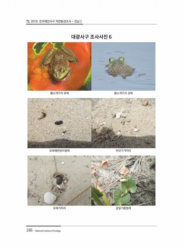 2018 전국해안사구 자연환경조사 전남Ⅰ 286 ? National Institute of Ecology 황소개구리 유체 황소개구리 성체 모래해변방아벌레 바닷가거저리 모래거저리 갈잎거품벌레6