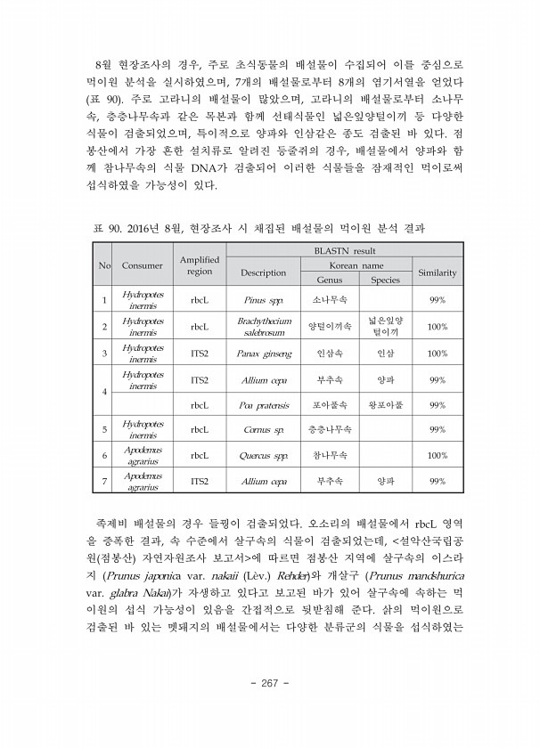 제목 : (2016) 백두대간보호지역 생태계 조사.밀재~묘적재