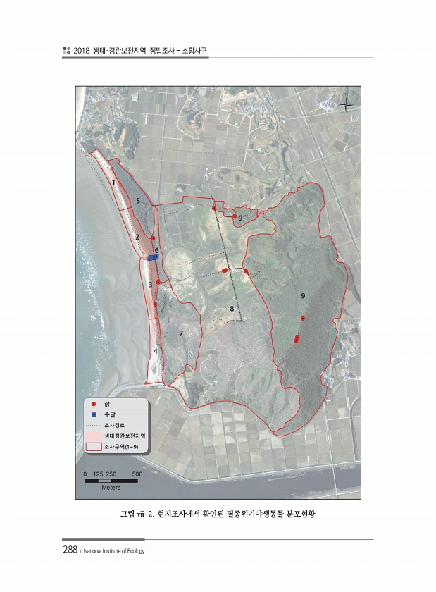 2018 생태·경관보전지역 정밀조사 소황사구 288 ? National Institute of Ecology 그림 ⅷ-2. 현지조사에서 확인된 멸종위기야생동물분포현황
