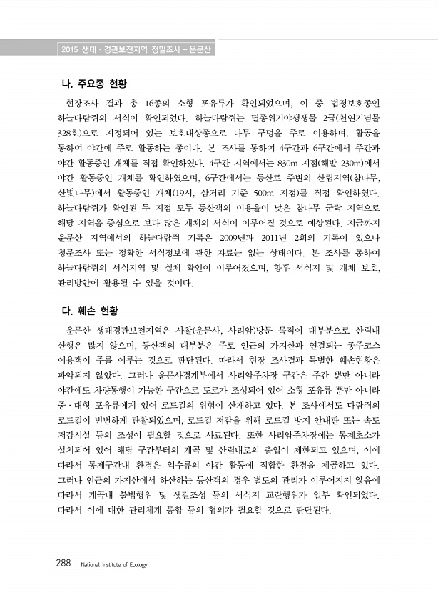 제목 : (2015) 생태·경관보전지역 정밀조사 : 운문산