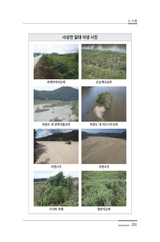 ii. 식 생 www.nie.re.kr ?291 족제비싸리군락 큰금계국군락 하중도 내 달뿌리풀군락 하중도 내 버드나무군락 자연나지 자연나지 가시박 피해뚱딴지군락