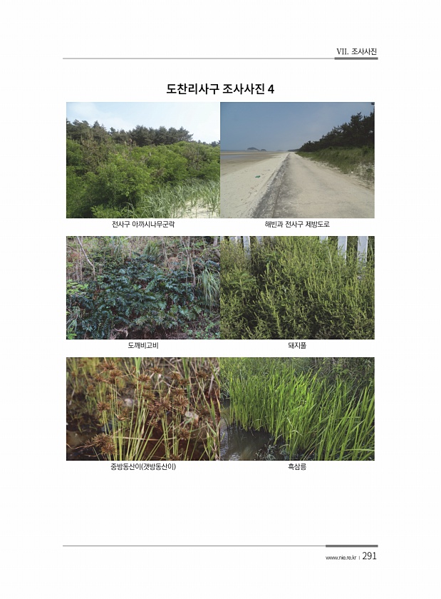 VII. 조사사진 www.nie.re.kr ?291 전사구 아까시나무군락 해빈과 전사구 제방도로 도깨비고비 돼지풀 중방동산이 갯방동산이 흑삼릉4