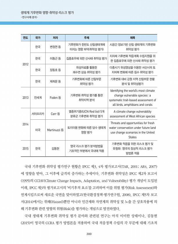 제목 : 생태계 기후변화 영향·취약성·리스크평가 : 연구사례분석