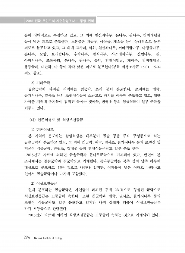 제목 : (2015) 전국 무인도서 자연환경조사 : 통영 권역